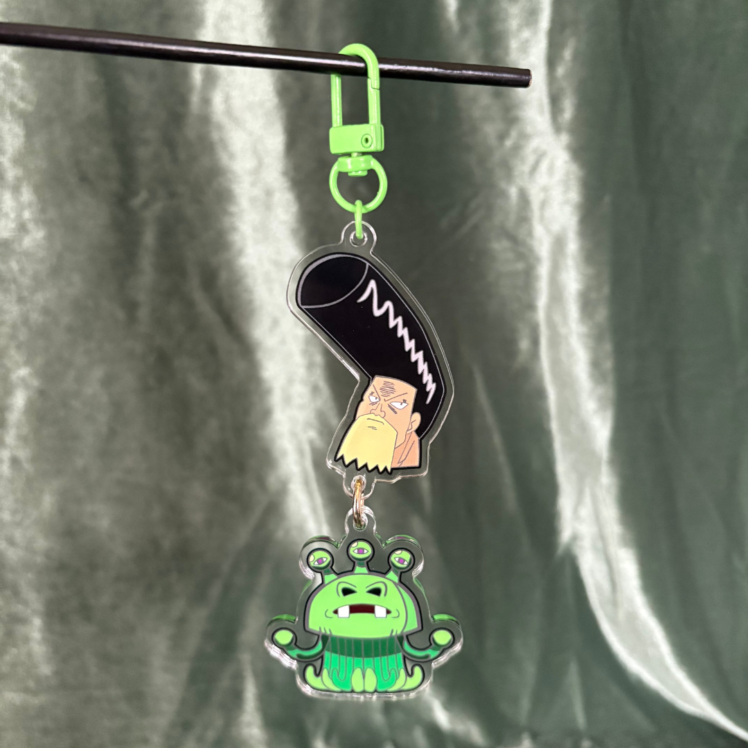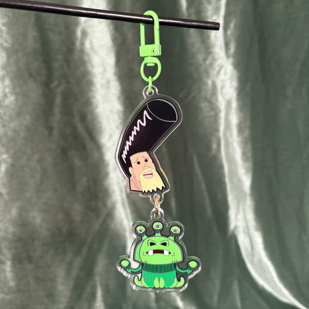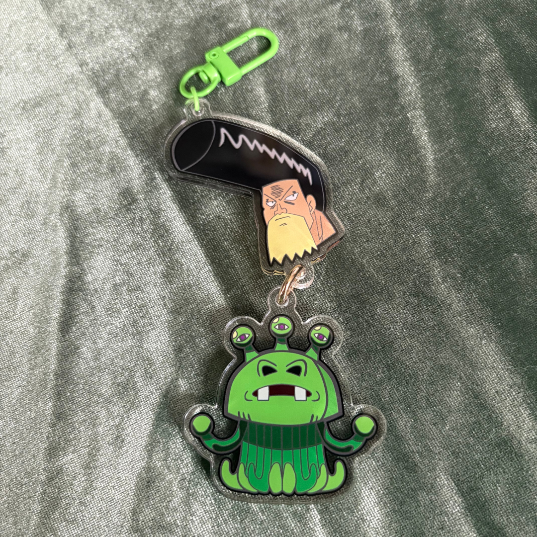 A 3mm thick Acrylic Charm set inspired by the sworn rival of the protagonist and one of the Hair Hunting Empire’s Four Heavenly Kings. This charm features 2 charms: A Double-Sided Pompadour Head and an Alien - which can be ordered independently or as a set of two connected by a Jump Ring. The Head Charm measures 43mm (1.7in) wide and 64mm (2.5in) tall and features his normal and happy designs, while the Alien Charm measures 50mm (2in) wide and 53mm (2.1in) tall. The charm comes with a Green Metal U-Style Spring Hook and can be Bundled with the other Rebel Charms on the specific Bundle Item Listings.