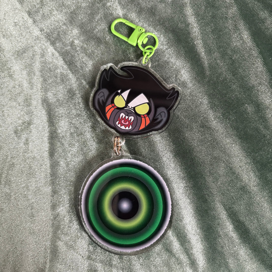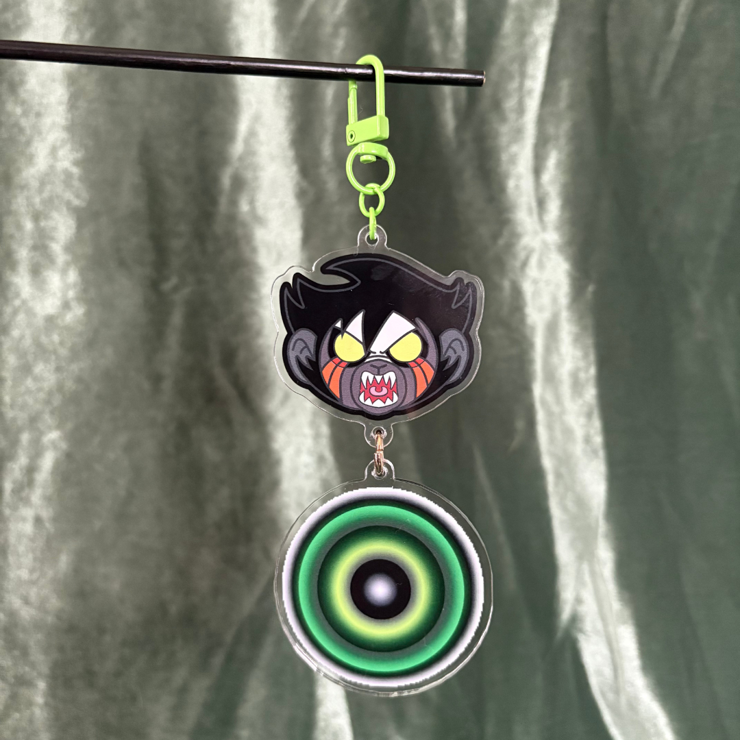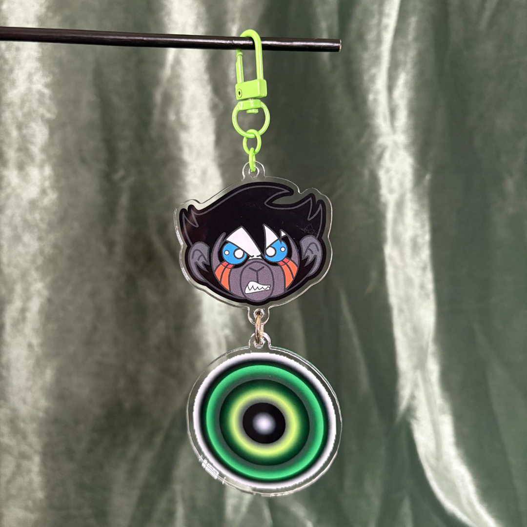 A 3mm thick Acrylic Charm set inspired by the Team Leader, after the Wise One gave up his power and transformed him into a monkey. This charm features 2 charms: A Double-Sided Chimp Head and an Aura Sphere - which can be ordered independently or as a set of two connected by a Jump Ring. The Head Charm measures 55mm (2.15in) wide and 58mm (2.3in) tall and features his active and normal designs, while the Aura Charm measures 45mm (1.75in) wide and 50mm (2in) tall. The charm comes with a Light Green U-Style Spring Hook and can be Bundled with the other SRMTHFG Charms on the specific “Hyper Force” Bundle Item Listings.