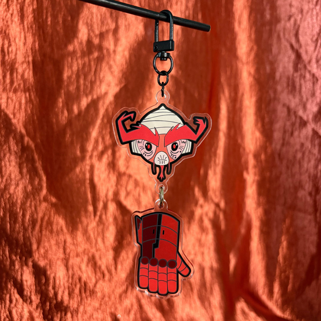 A 3mm thick Acrylic Charm set inspired by the Original Monkey, the former leader of Hyper Force and possessor of the Power Glove . This charm features 2 charms: A Double-Sided Pre-Transformation Head and his signature Power Glove - which can be ordered independently or as a set of two connected by a Jump Ring. The Head Charm measures 55mm (2.15in) wide and 58mm (2.3in) tall and features two different designs, while the Glove Charm measures 42mm (1.65in) wide and 65mm (2.5in) tall. The charm comes with a Black U-Style Spring Hook and can be Bundled with the other SRMTHFG Charms on the specific “Monkey Team” Bundle Item Listings.
