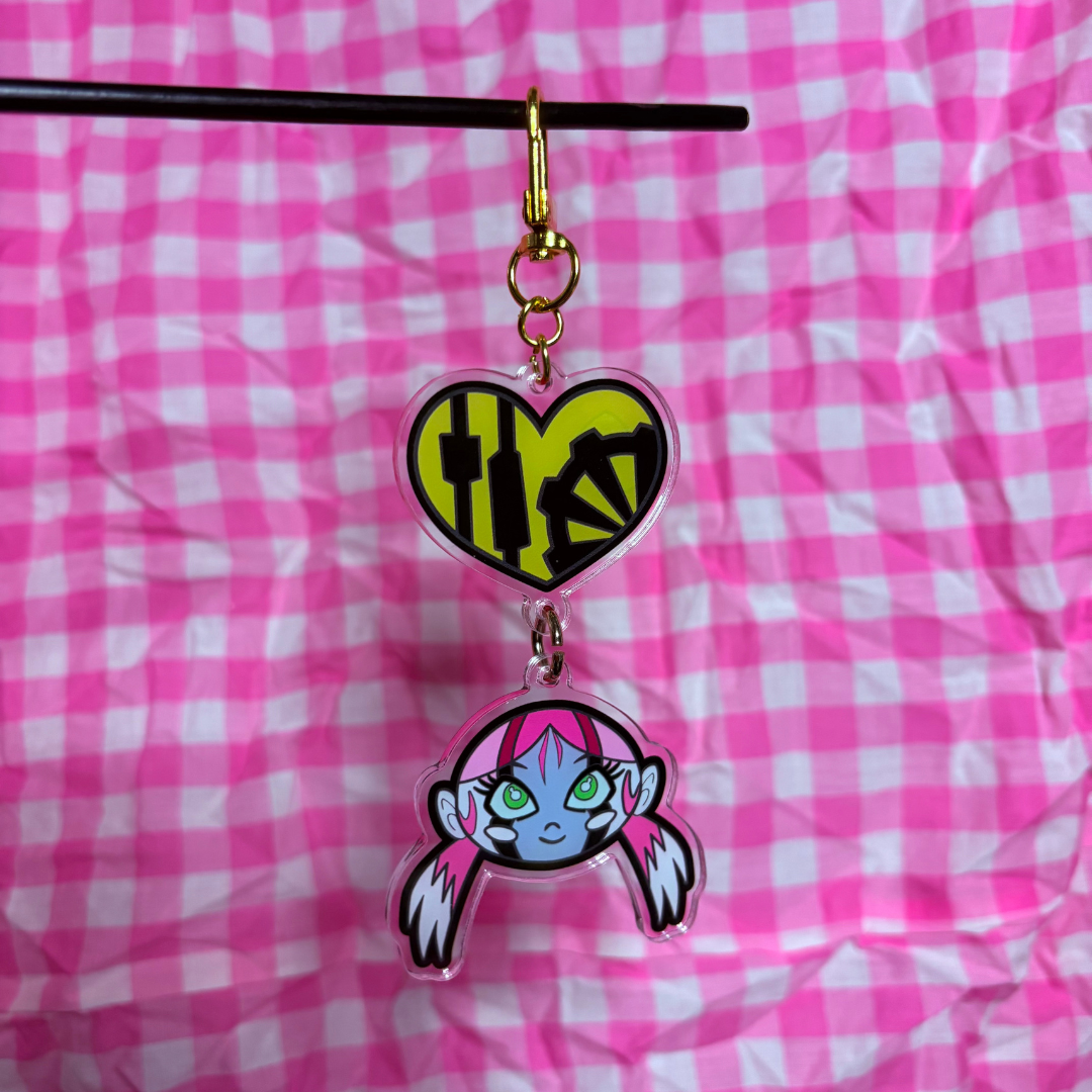 A 3mm thick Acrylic Charm set inspired by the Robot Girl, the cyborg girlfriend of the force’s leader and the interim defender of the Futuristic City. This charm features 2 charms: A Double-Sided Head and a double-sided Robot Heart - which can be ordered independently or as a set of two connected by a Jump Ring. The Head Charm measures 55mm (2.15in) wide and 50mm (2in) tall and features her active and normal designs, while the Heart Charm measures 45mm (1.75in) wide and 37mm (1.45in) tall and features the regular and robotic heart on either side. The charm comes with a Pink U-Style Spring Hook and can be Bundled with the other SRMTHFG Charms on the specific “Hyper Force” Bundle Item Listings.