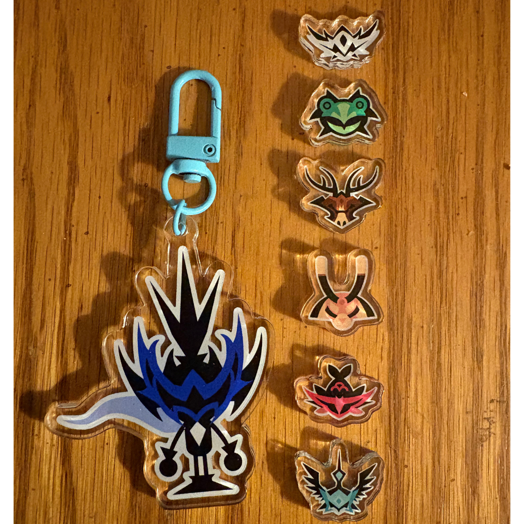 A 3mm thick Acrylic Shaker Charm inspired by the Spear-Class Uber-hero from the 3rd Installment of a Drum-Based rhythm game on the PSP. The charm comes with a Blue U-Style Spring Hook. The Head of the Hero acts as the case and the Different Special Class Masks as the Shaker Inserts. The back features a unique design containing a reference to the Spear Weapon. This is one of three shakers in the Uber-hero collection.
